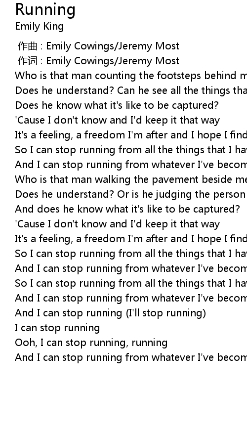 | [02:58.42] | And I can stop running I' ll stop running |