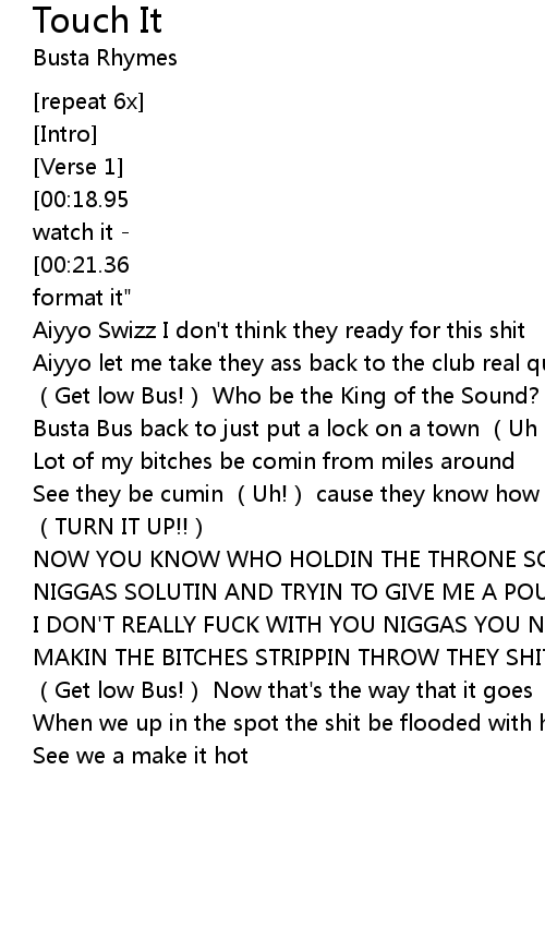 | [00:23.64][00:18.95][00:14.30][00:09.72][00:00.26] | " Touch it bring it babe watch it |