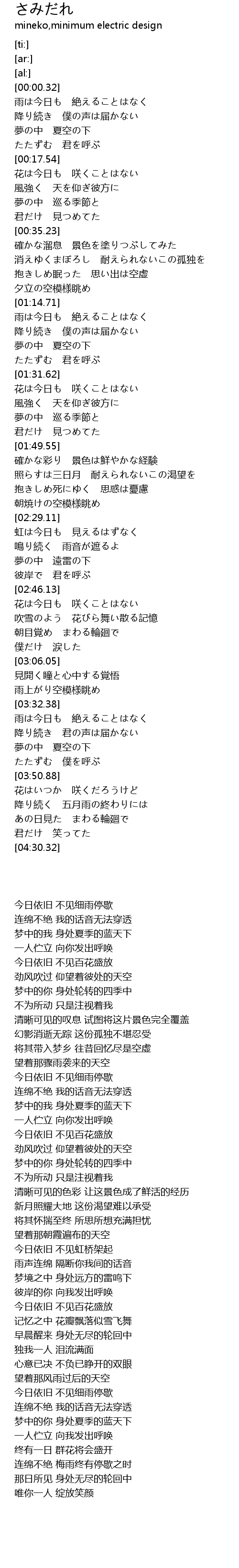 | [03:54.94] | 降り続く 五月雨の終わりには |