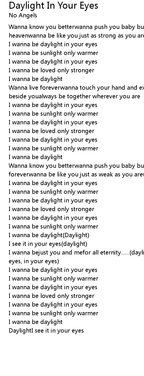 I wanna be daylight in your eyes |