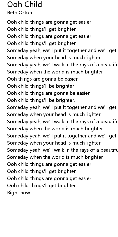 Ooh child things are gonna be easier |