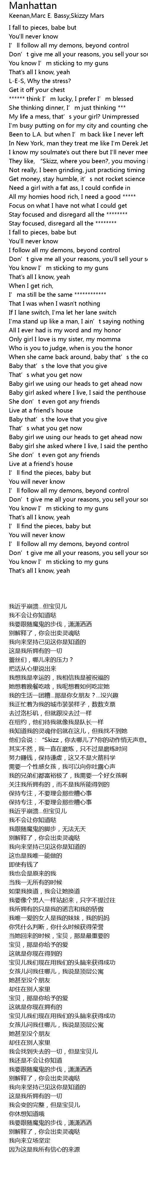 | 专辑 | Manhattan (feat. Marc E. Bassy & Skizzy Mars) |