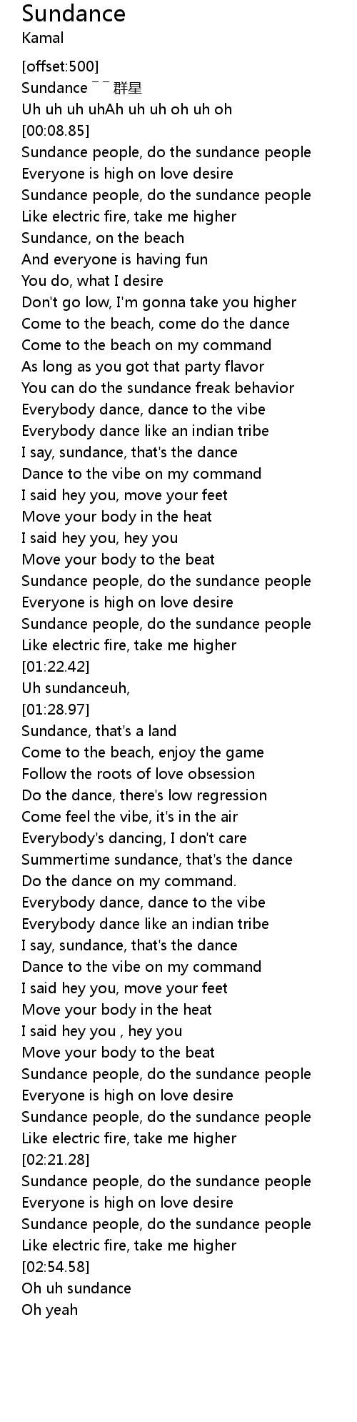 | [02:58.20] | Oh uh sundance |