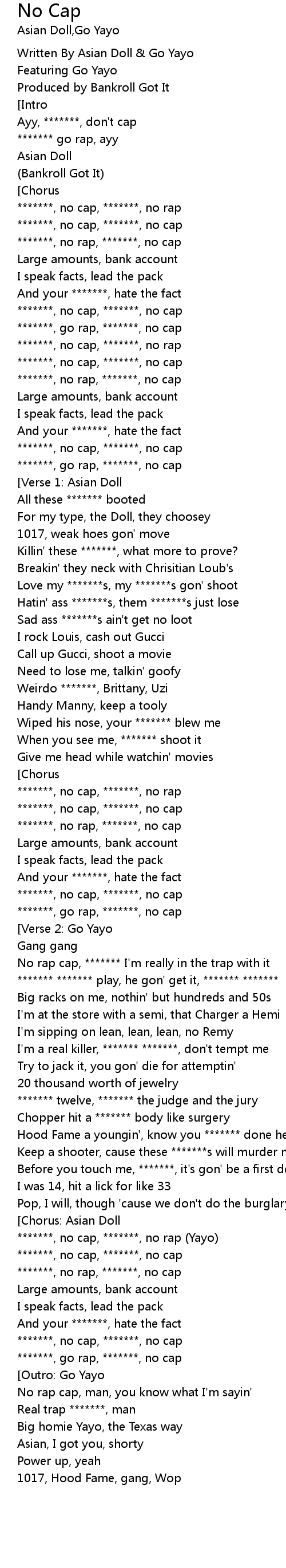 [01:49.211] *******, no cap, *******, no rap (Yayo)