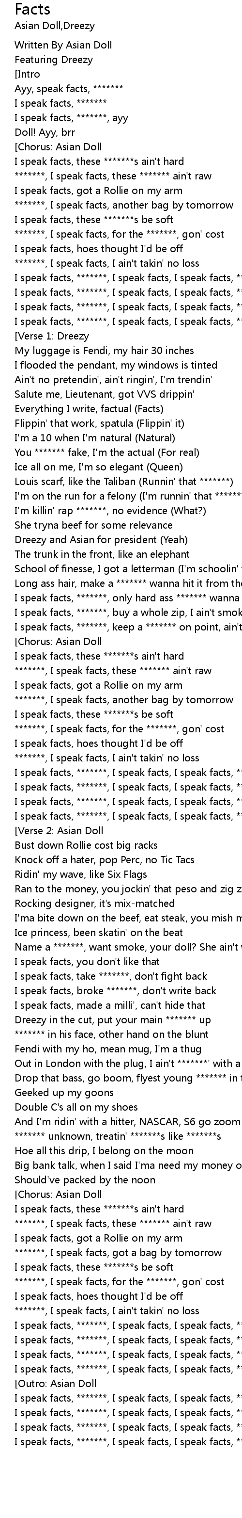I speak facts, *******, I speak facts, I speak facts, ******* |