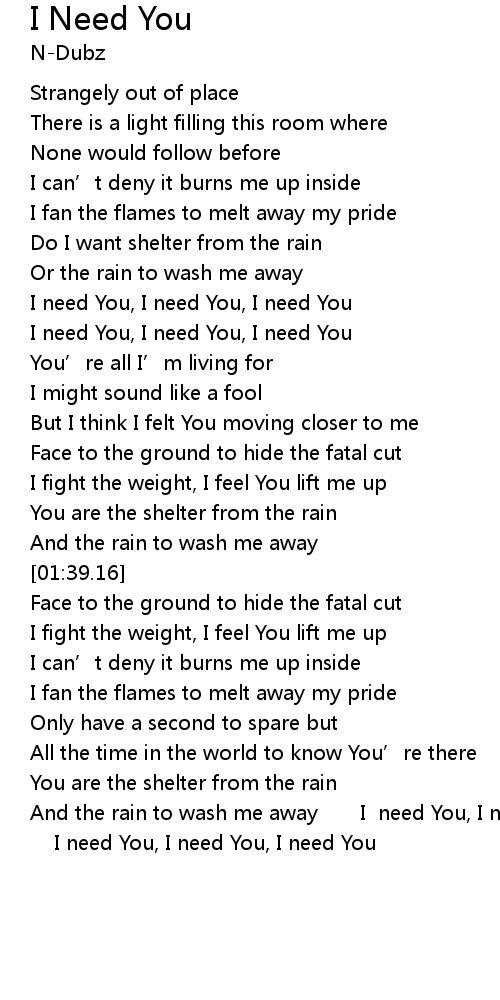 | [00:50.45] | I need You, I need You, I need You |