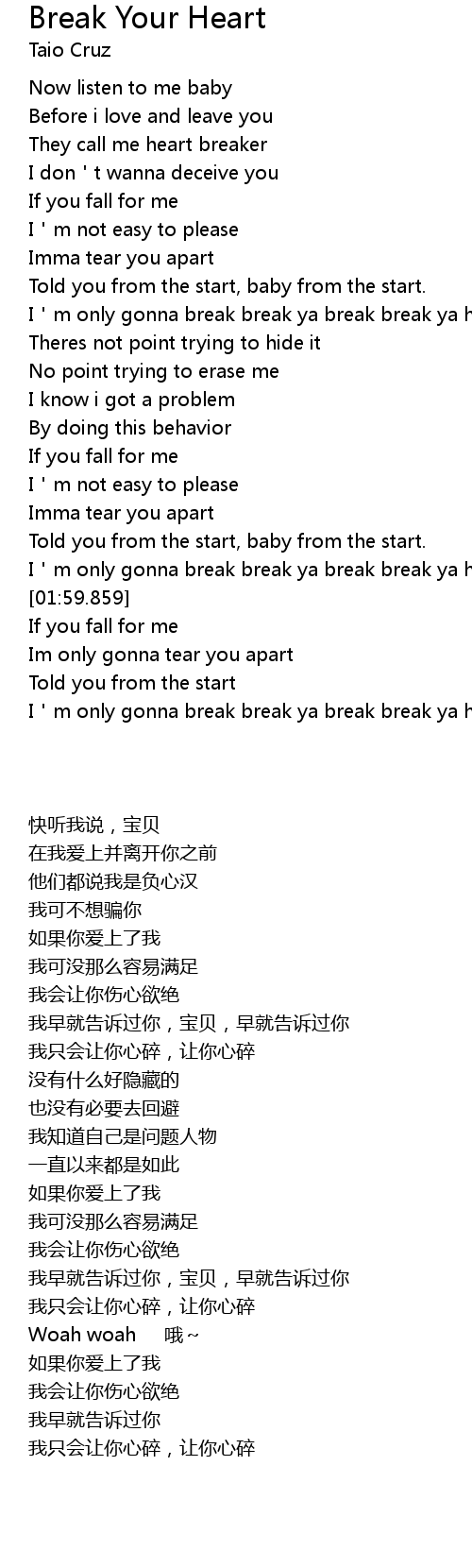| [00:47.990] | I m only gonna break break ya break break ya heart. x4 |
