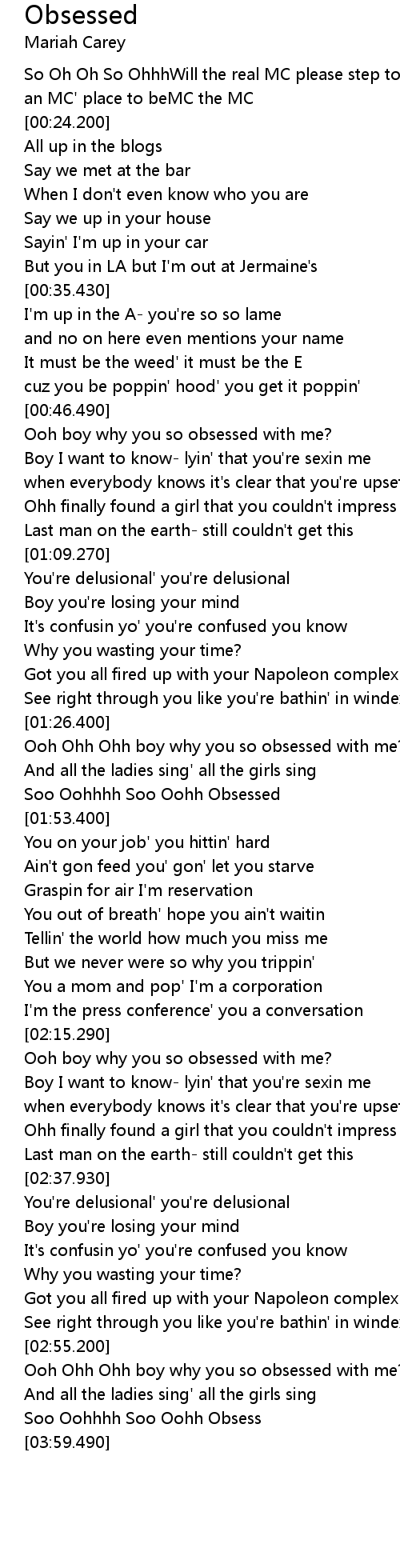 Ooh Ohh Ohh boy why you so obsessed with me? |