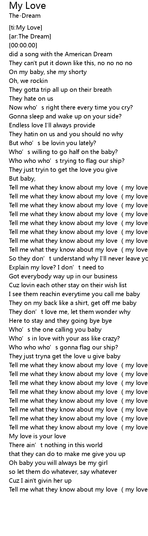 | [00:48.24] | Tell me what they know about my love my love |