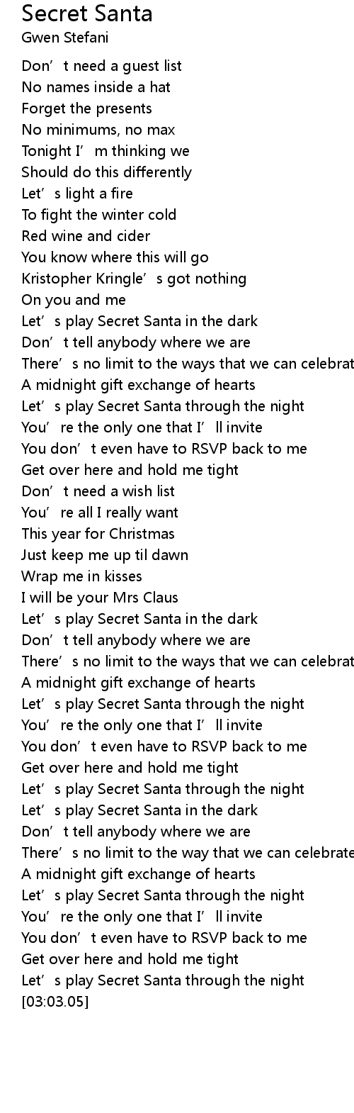 | [02:58.17] | Let' s play Secret Santa through the night |
