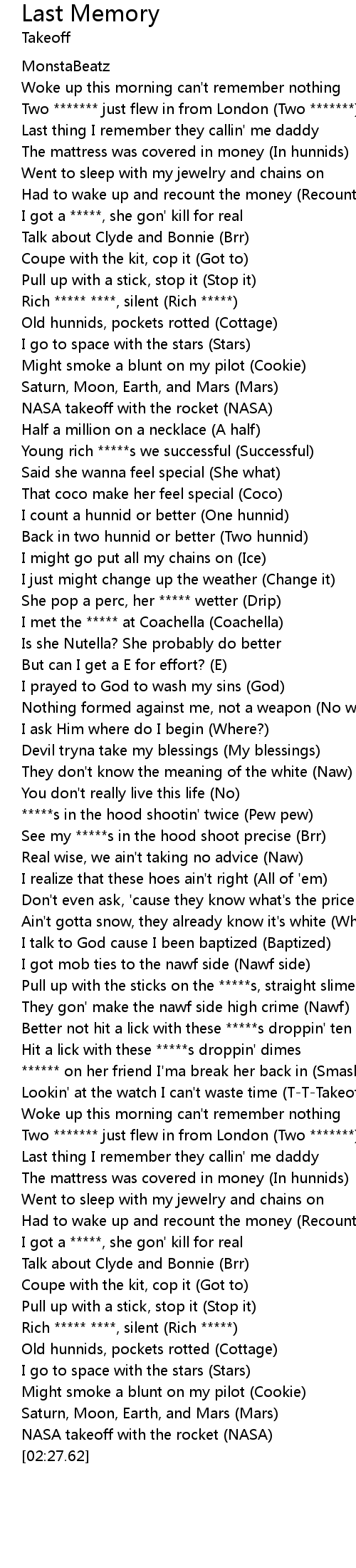 Lookin' at the watch I can't waste time (T-T-Takeoff) |