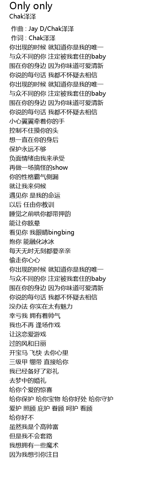 | [00:00.000] | 作曲 : Jay D/Chak泽泽 |