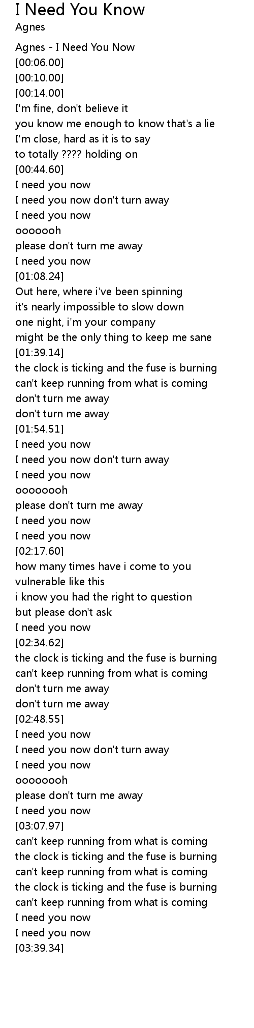 Agnes - I Need You Now |