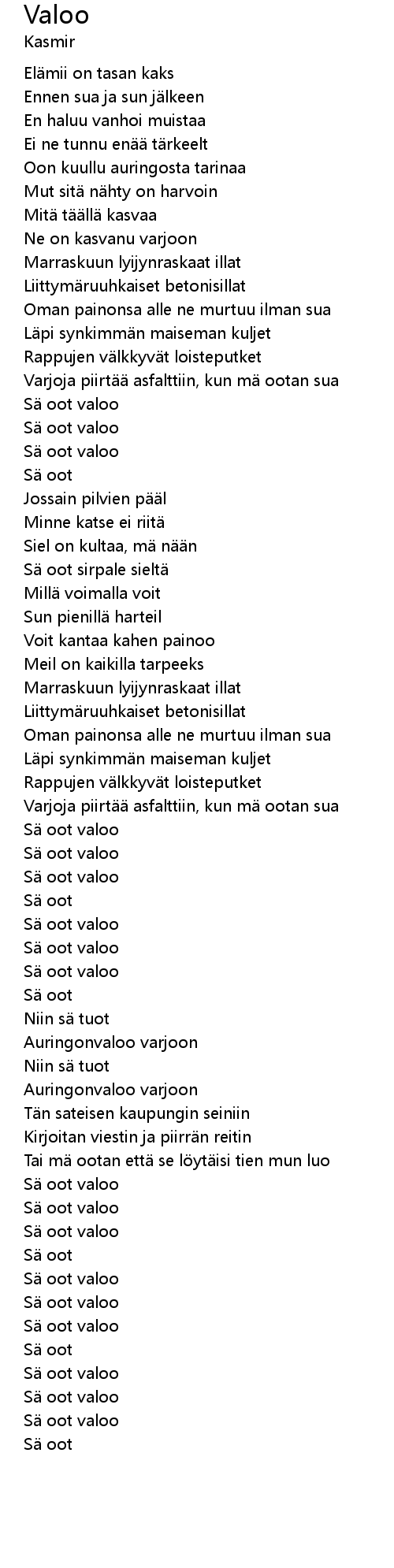 | [02:01.86] | Sä oot valoo |
