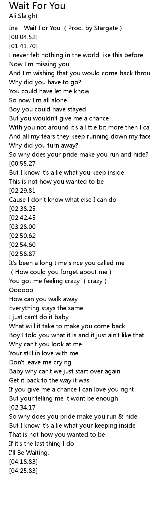 | [00:00.52] | Ina - Wait For You (Prod. by Stargate) |