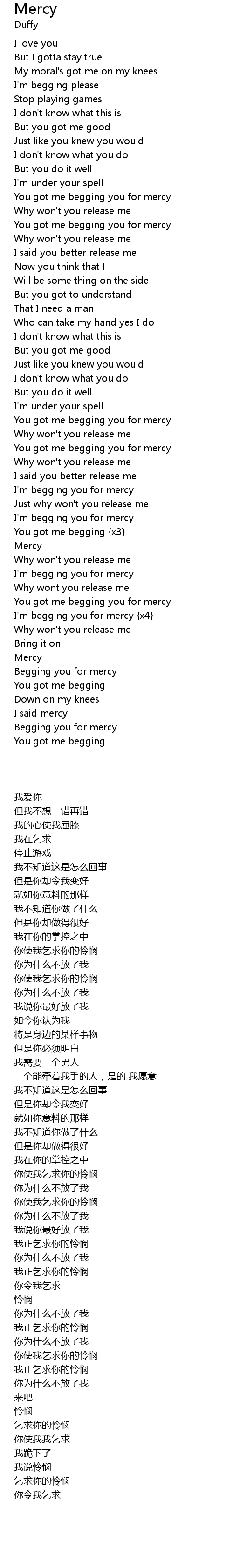 I'm begging you for mercy {x4} |