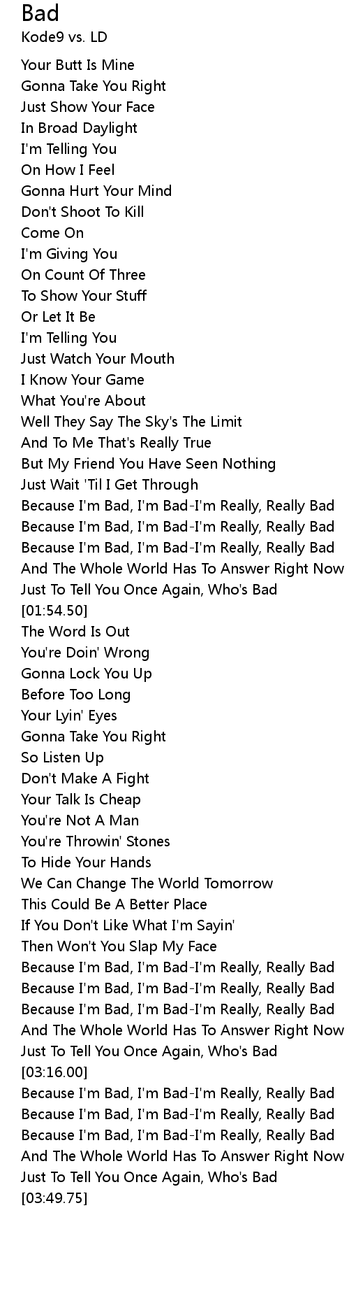 [01:50.63] Just To Tell You Once Again, Who's Bad