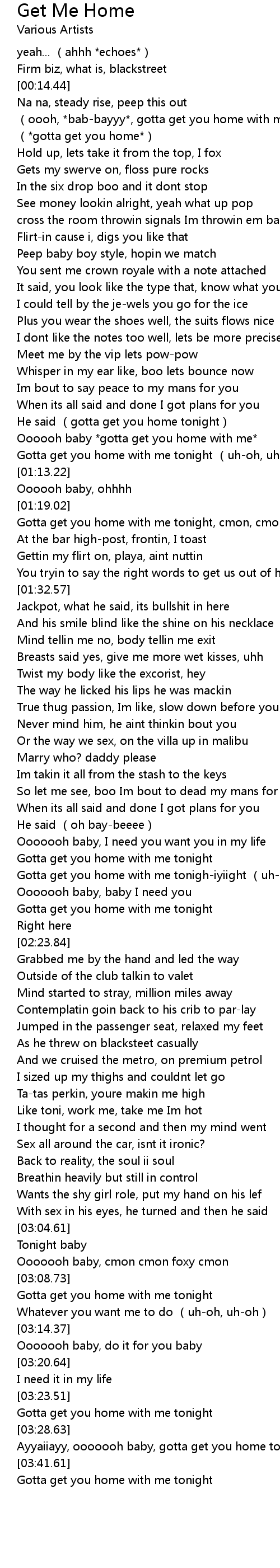 | [01:07.03] | Oooooh baby gotta get you home with me |