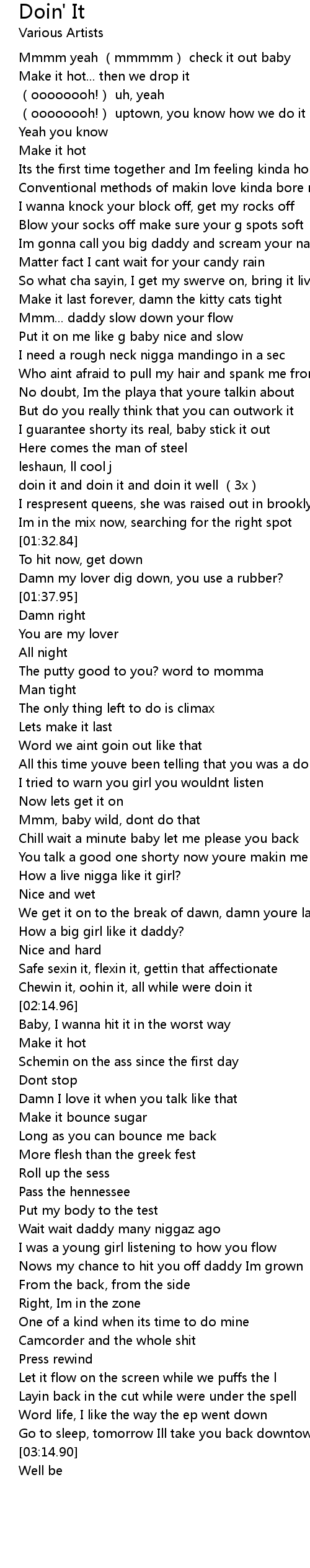 | [01:16.46] | doin it and doin it and doin it well (3x) |