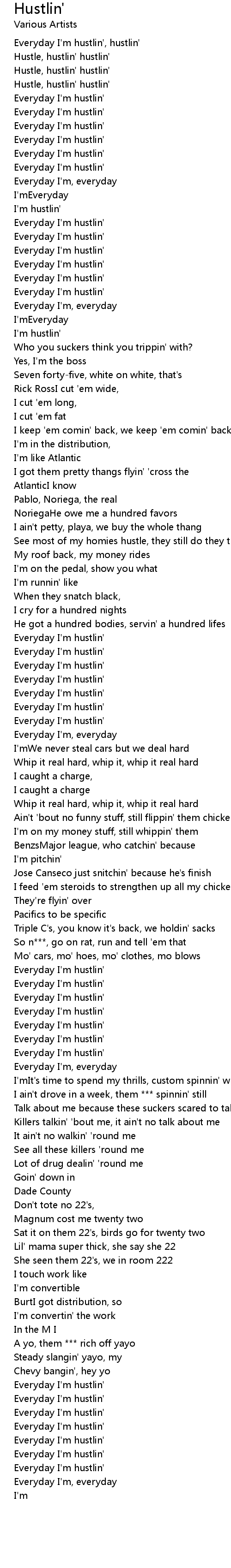 Mo' cars, mo' hoes, mo' clothes, mo blows |