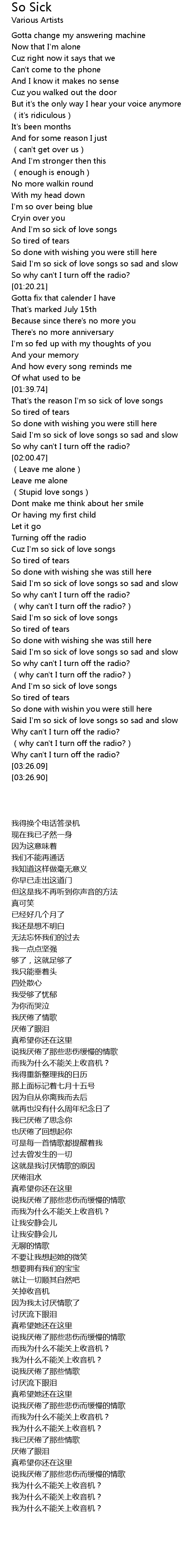 | [02:41.33] | Said I'm so sick of love songs |