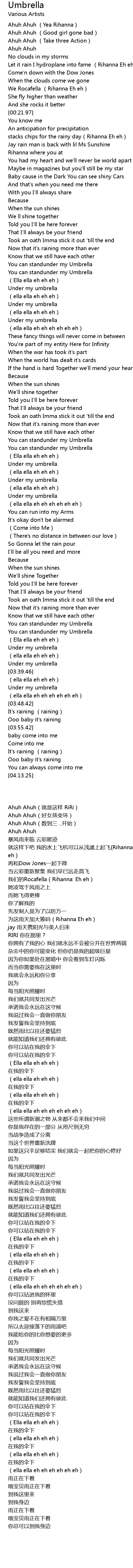 | [02:21.51] | You can standunder my Umbrella |