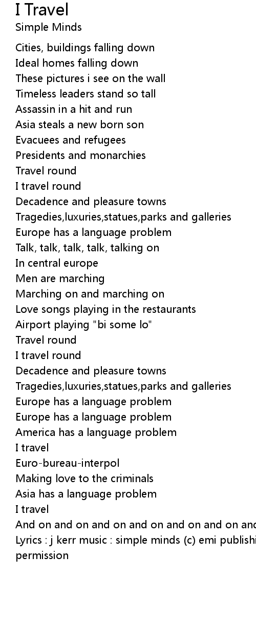 Lyrics : j kerr music : simple minds (c) emi publishing ltd reproduced without permission |