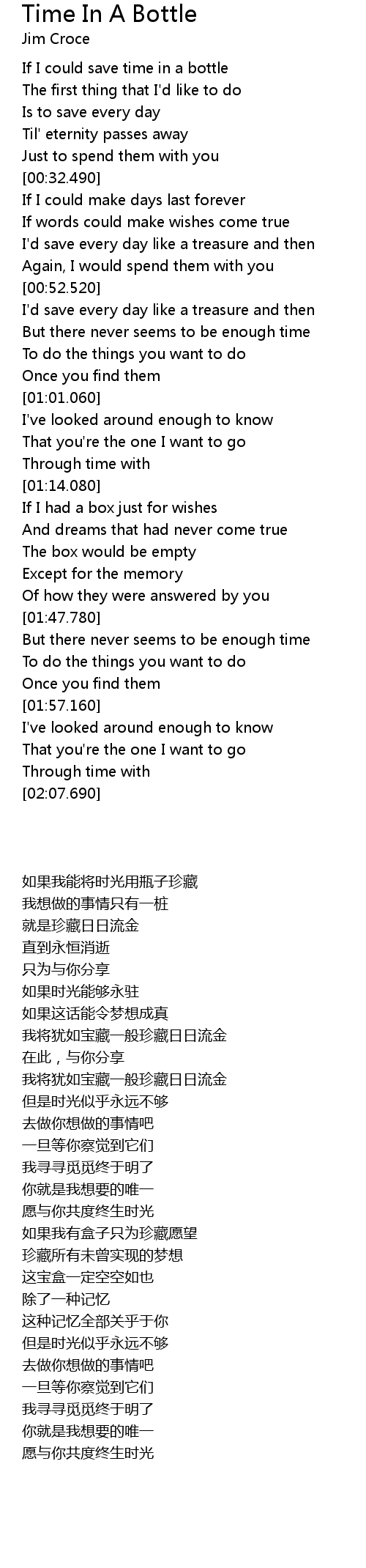 Time In A Bottle 歌词