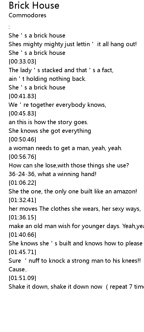 | [00:38.84] | She's a brick house |