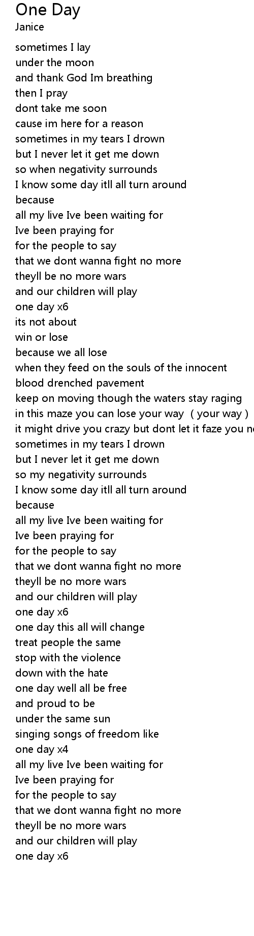 | [00:35.67] | I know some day itll all turn around |