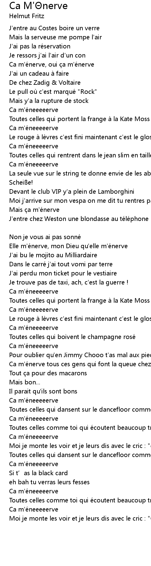 | Elle m'é nerve, mon Dieu qu' elle m'é nerve | |