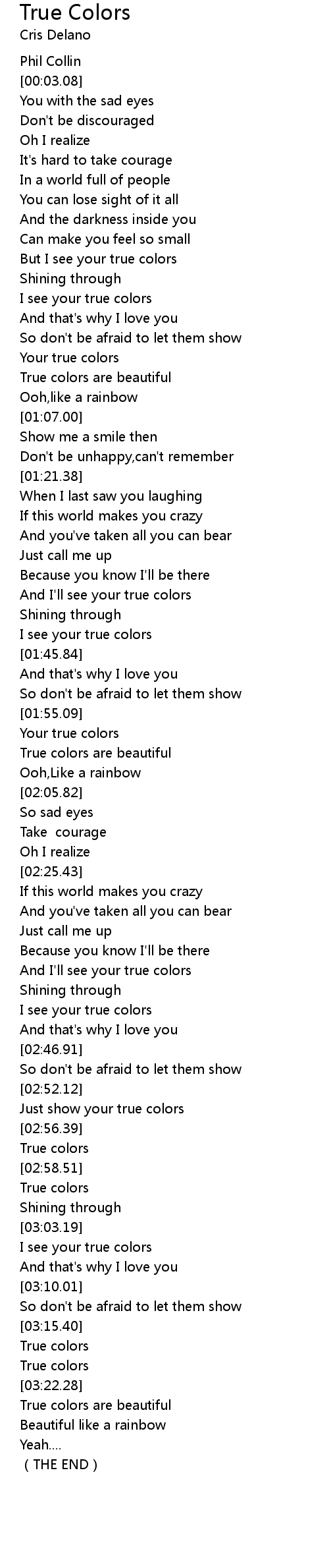 | [00:55.41] | Your true colors |