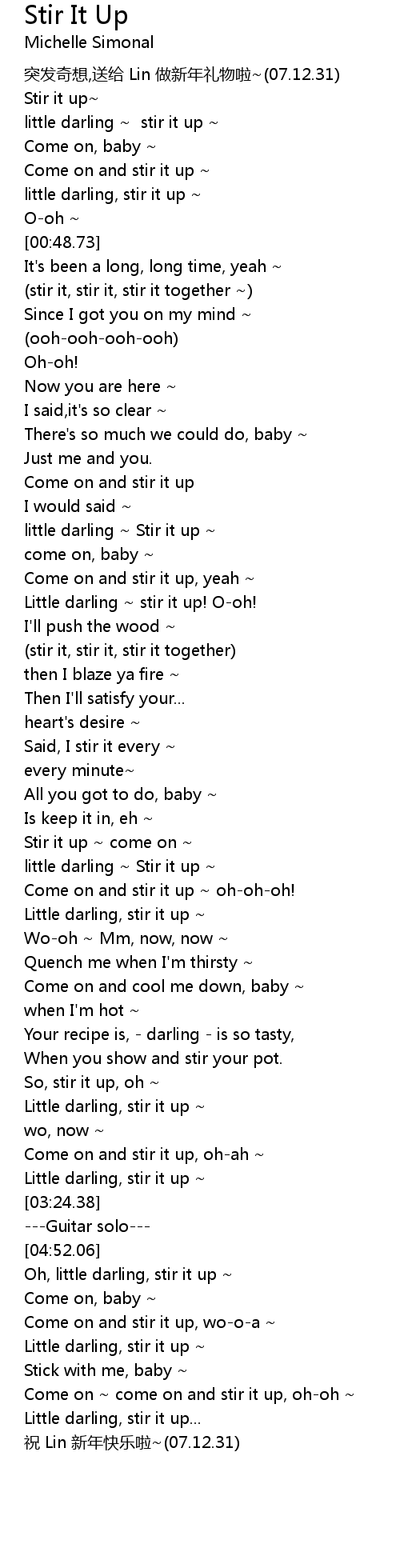 | [02:17.62] | Come on and stir it up ohohoh! |
