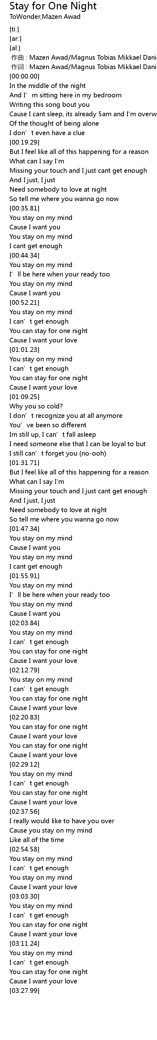 | [03:03.39] | You stay on my mind |