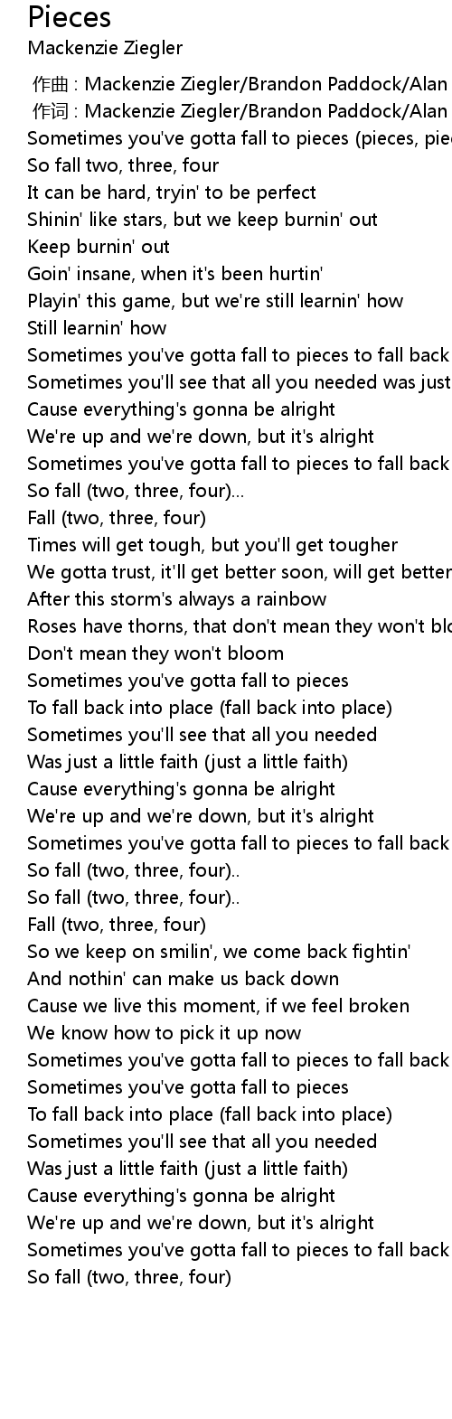 | [00:00.55] | Sometimes you' ve gotta fall to pieces pieces, pieces, pieces |