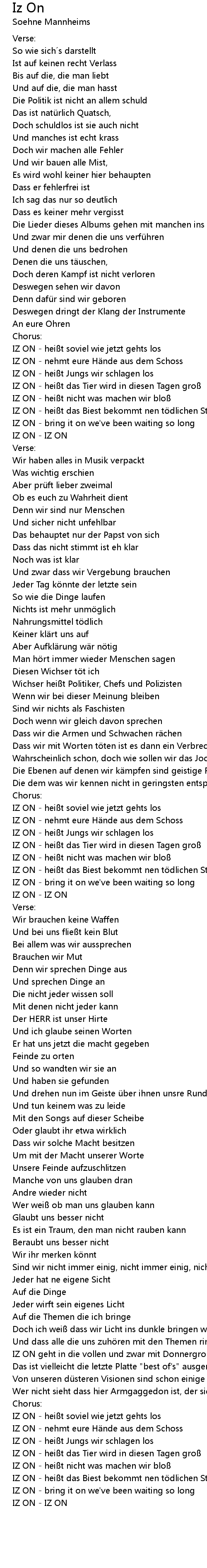 | IZ ON nehmt eure H nde aus dem Schoss | |
