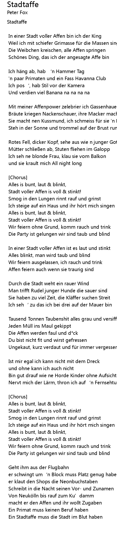 | In einer Stadt voller Affen ist es laut und stinkt | |