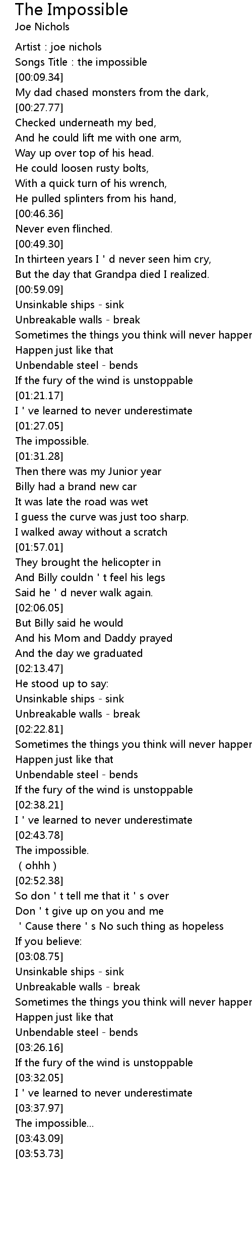 | [03:38.79] | The impossible... |