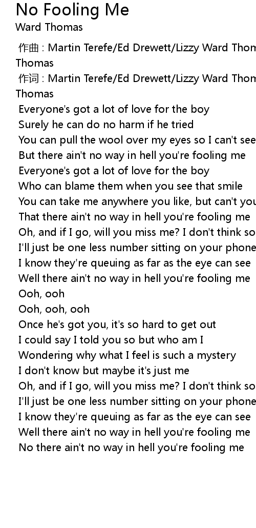 | [02:31.049] | No there ain't no way in hell you're fooling me |