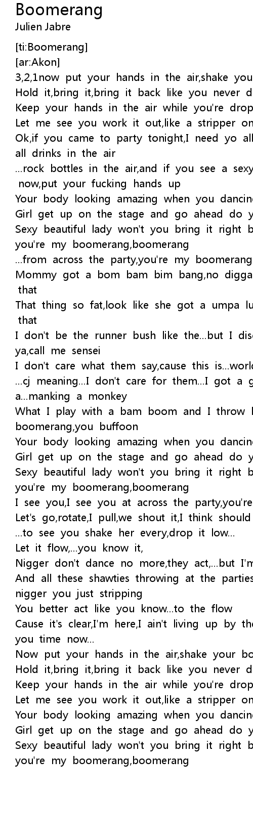 [02:56.279] Sexy beautiful lady won't you bring it right back,...lady you're my boomerang,boomerang