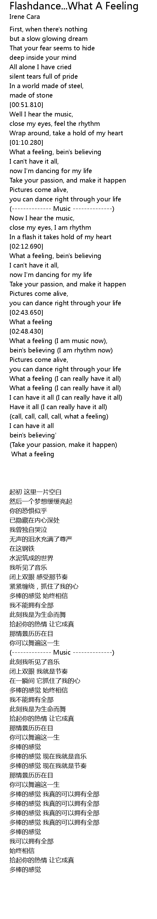 What a feeling (I am music now), |