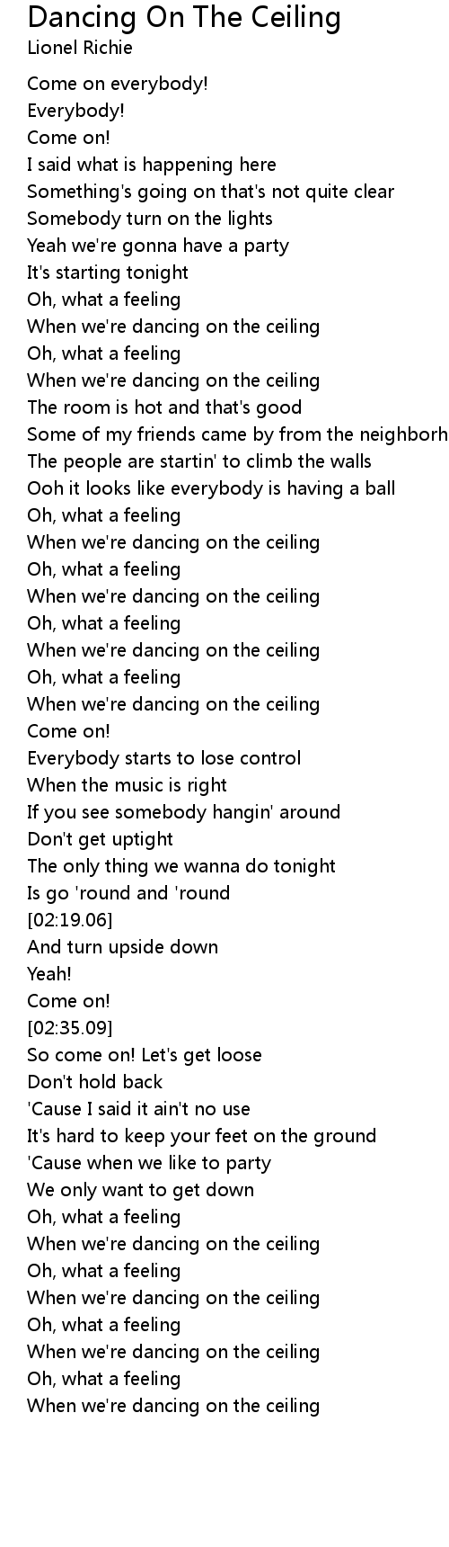 歌曲 Dancing On The Ceiling