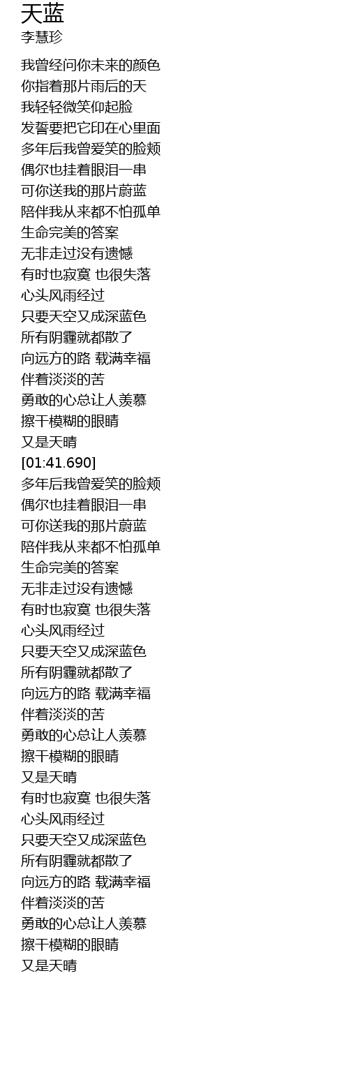 | [00:41.930] | 可你送我的那片蔚蓝 |