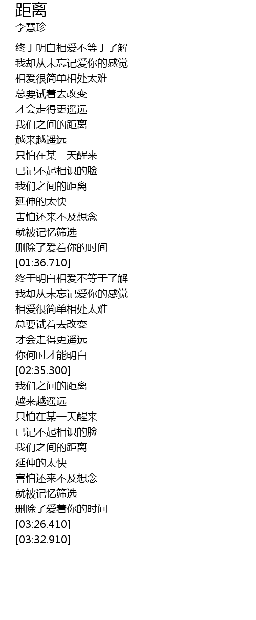 | [02:58.190] | wǒ men zhī jiān de jù lí |