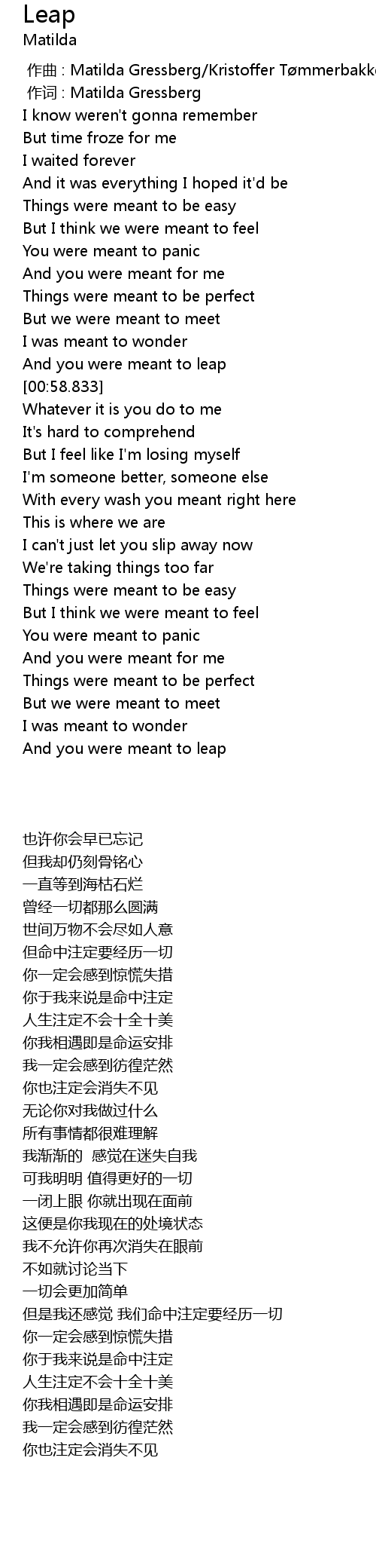 | [00:01.000] | zuò cí : Matilda Gressberg |