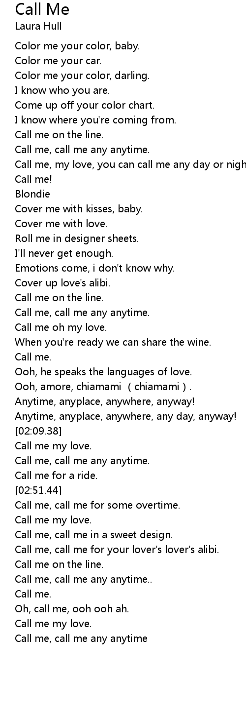 | [03:18.70] | Oh, call me, ooh ooh ah. |