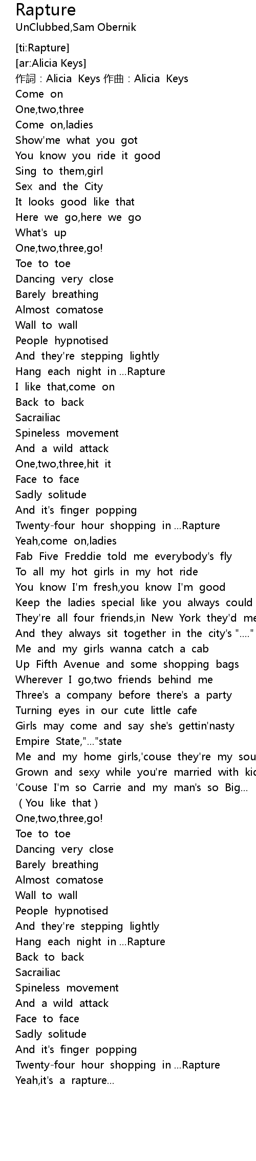 | [03:44.11] | Hang each night in ...Rapture |