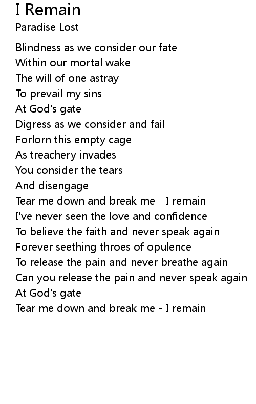 Tear me down and break me - I remain |