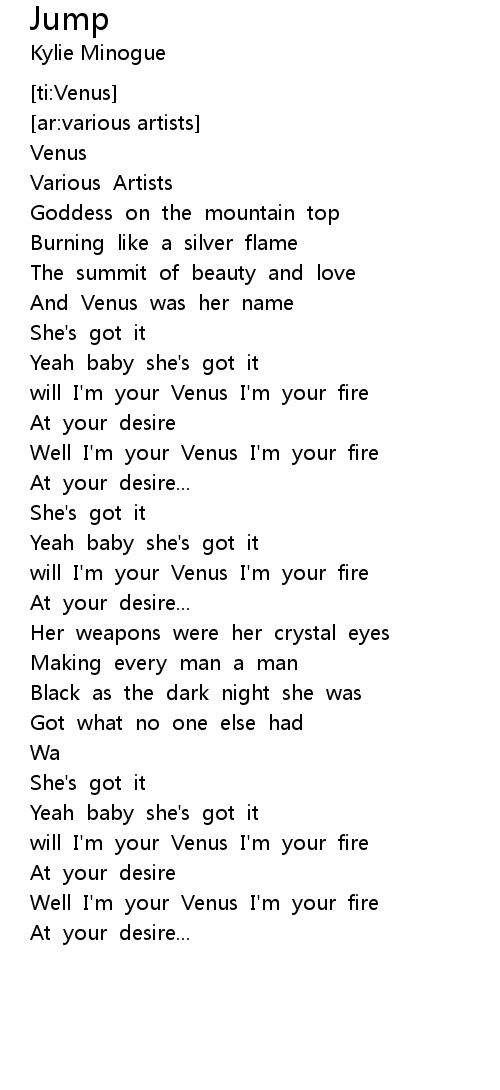 [02:30.46] will I'm your Venus I'm your fire