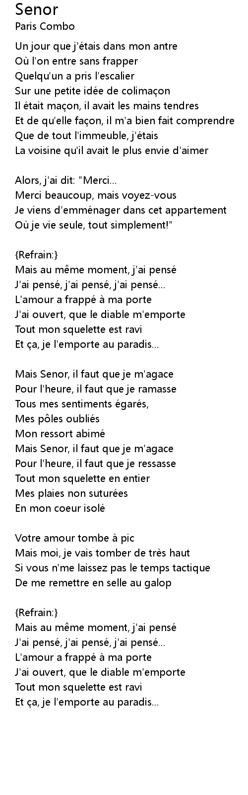 | Mais Senor, il faut que je m' agace | |